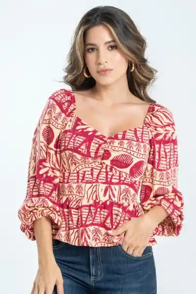 En Chalis Estampado Escote en V Con Recogido en Busto Ajusta en Cintura Resortado en Espalda Manga Larga.