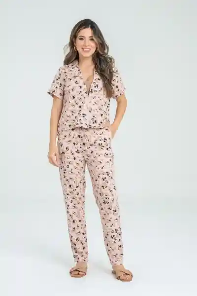 En Lino Estampado de Animal Print Cuello de Doblar Cierre Semi Invisible Tono a Tono en Centro Frente Manga Corta Con Puño de Doblar Fijo Con Pespunte Largo Pretina Con Ruedo de 2 cm Silueta Semi Ajustada.