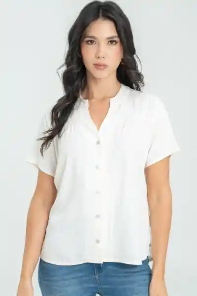 En Tejido Plano Fondo Entero Cuello Con Terminación Redondeada Almillas Delanteras y Traseras Con Recogido Suave y Parejo Manga Corta Botonado en la Parte Delantera Con Botón 18L Silueta Semi Ajustada Aberturas a Lado y Lado Del Ruedo.