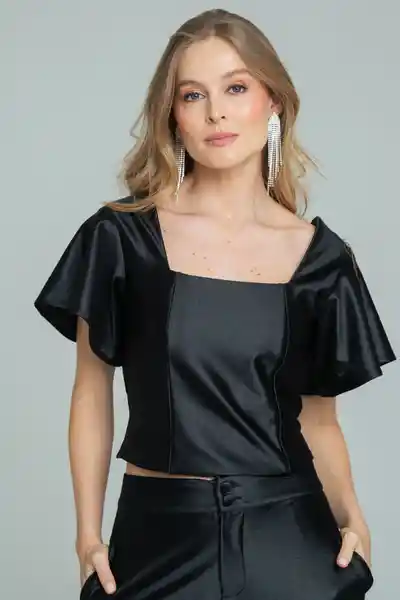 En Tejido Plano Fondo Entero Escote Cuadrado Tanto en Delantero Como en Posterior Manga Corta Con un Poco de Vuelo Largo Pretina Ruedos de 0.8 mm Silueta Semi Ajustada.