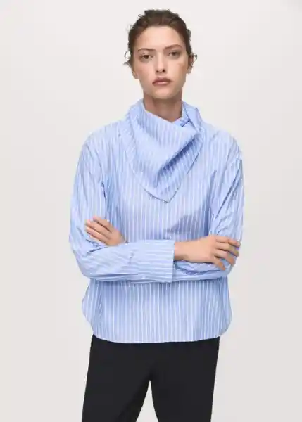 Cierre de Botón en el Cuello Cuello Redondo Diseño de Rayas Diseño Recto Manga Larga Con Puños Abotonados Pañuelo en el Cuello - 17095808_50.