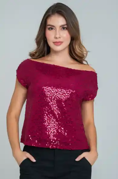 En Lentejuela Forrada Escote Barco Manga Rodada Silueta Amplia.