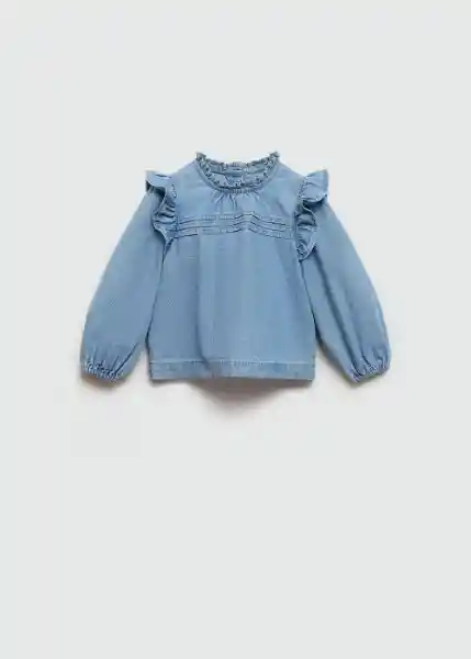 Botones Efecto Madera, Cierre de Botones en la Parte Posterior, Cuello Redondo, Detalle de Volantes, Detalles Bordados, Manga Larga Abullonada, Tejido de Algodón Estilo Tejano Vaquero, Vuelta a Clase - 77046342_Tm.