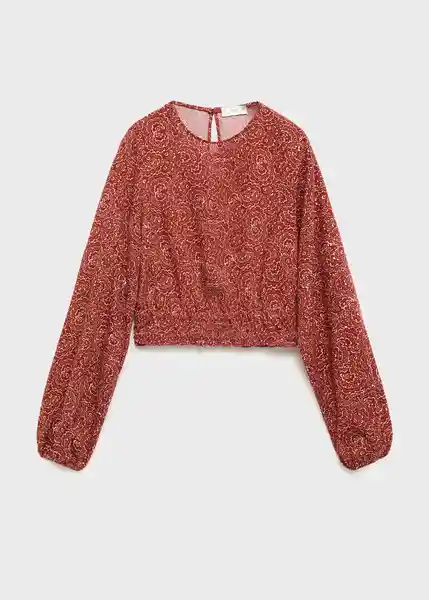 Cierre de Botón en la Parte Posterior Cuello Redondo Diseño Estampado Elástico en el Bajo Manga Larga Abullonada Tejido Fluido Total Look - 17053286_28.