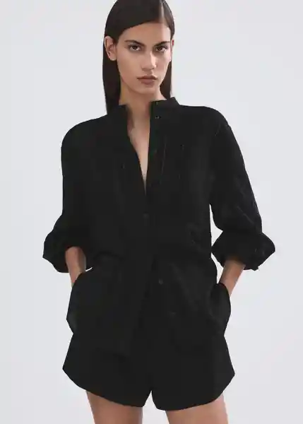 Cierre Delantero Con Botones Cuello de Tira Detalles Bordados Calados Diseño Recto Manga Larga Tejido de Algodón - 27026345_99.