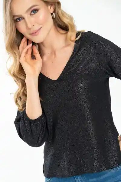 En Lino Con Lurex Fondo Entero Escote en V Manga 3/4 Con Elástico en Ruedo.