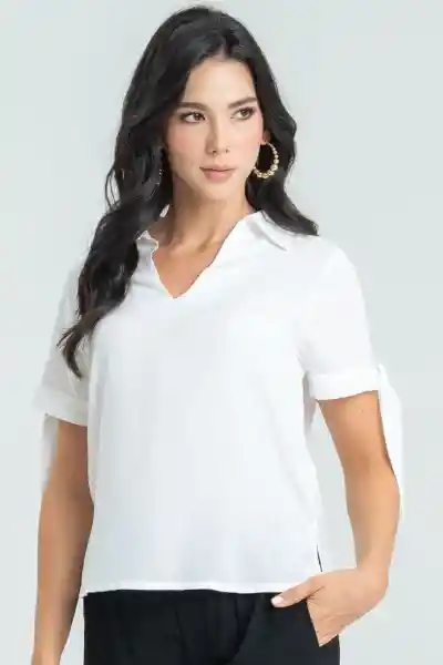 En Chalis Fondo Entero Con Cuello y Escote en V Manga Corta Con Amarre Decorativo en Puño