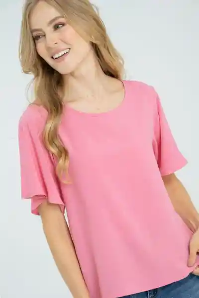 En Chalis Fondo Entero Escote Redondo Manga Corta Campana Ajusta en Parte Posterior Con Botón de Pata 8 mm Silueta Amplia.