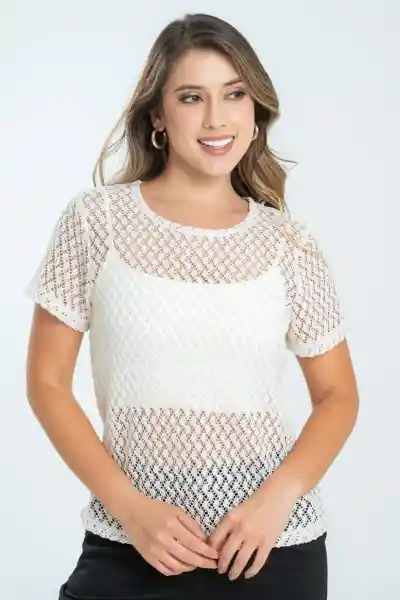 En Tejido Fondo Entero Cuello Redondo Manga Corta Silueta Amplia.