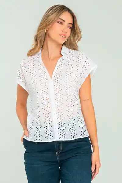 En Ojalillo Con Cuello y Escote en v Con Corte Decorativo en Centro Almilla en Posterior Con Prense Decorativo Manga Rodada.