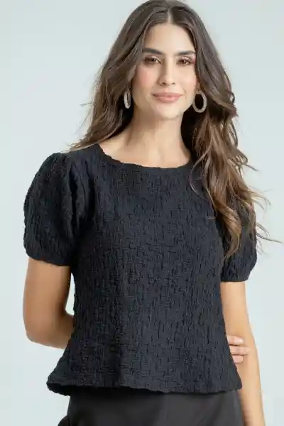 En Tejido Especial Fondo Entero Escote Redondo Manga Corta Con Elastico de 1 cm en Puño Recogido Suave en Hombro Silueta Semi Ajustada.