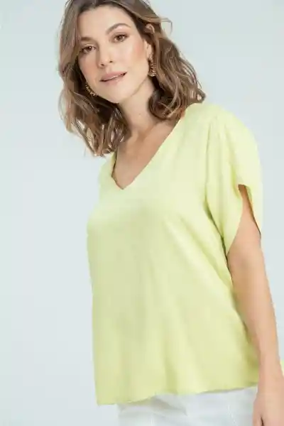En Tejido Plano Fondo Entero Escote en V Con Falso Manga Corta Arriba Del Codo Con Detalle de Corte en la Parte Delantera Silueta Semi - Ajustada.