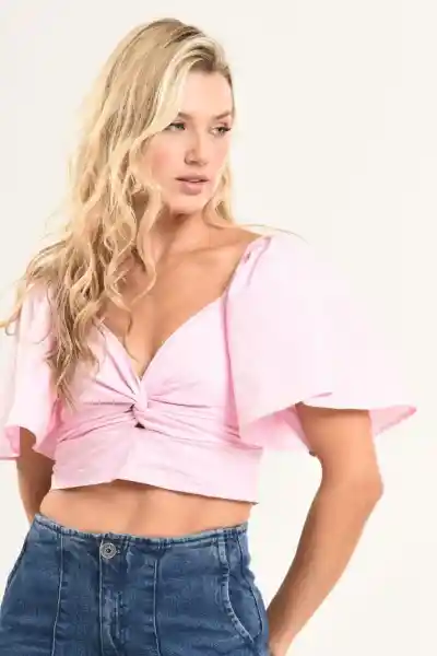 En Popelina Fondo Entero Escote Corazón Con Anudado Decorativo Manga Corta Con Vuelo Espalda Resortada Para Ajuste.