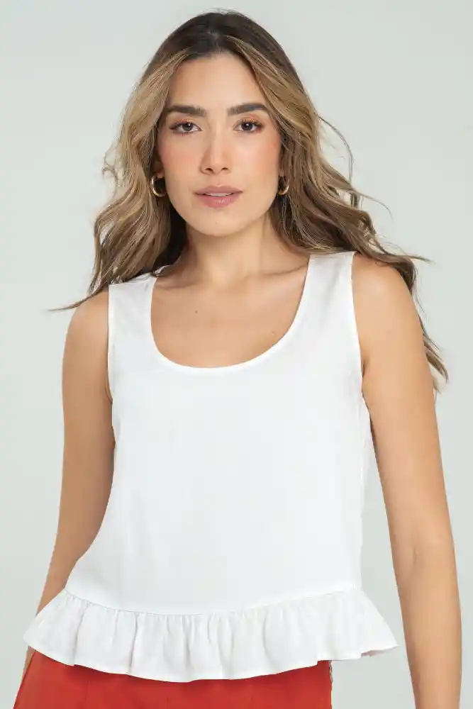 Blusa en chalis fondo entero, escote redondo, manga sisa, bolero decorativo en ruedo.