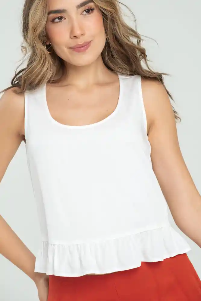 Blusa en chalis fondo entero, escote redondo, manga sisa, bolero decorativo en ruedo.