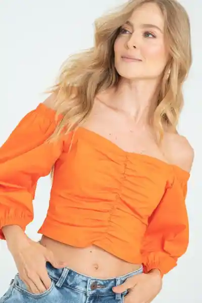 En Popelina Fondo Entero Escote en Recogido Centro Ajusta en Cuerpo Manga 3/4 Puffy.