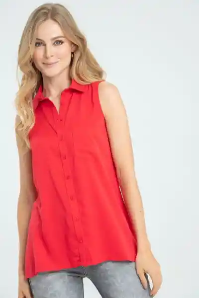 En Chalis Fondo Entero Con Cuello y Perilla Completa Manga Sisa Aberturas Laterales Ajusta Con Botón Tono a Tono 18L Bolsillo en Delantero Silueta Amplia.