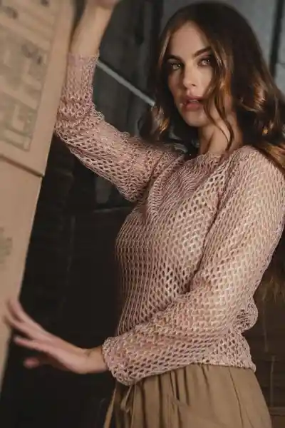 En Malla Especial Con Brillo Escote Ojal Manga Larga Silueta Amplia.
