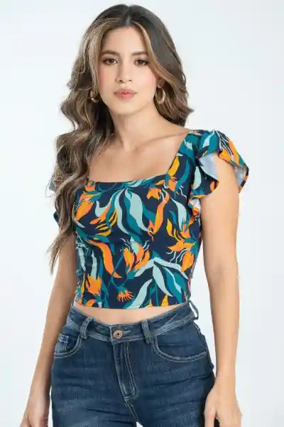 En Chalis Estampado Escote Cuadrado Con Manga Bolero Espalda Resortada Silueta Ajustada.