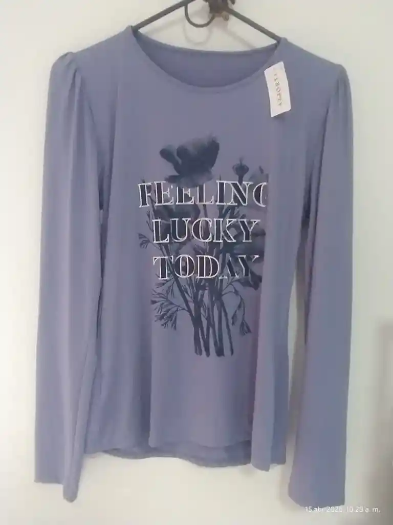 Blusa manga larga Azul petroleo con estampado talla L tela piel de durazno spandex