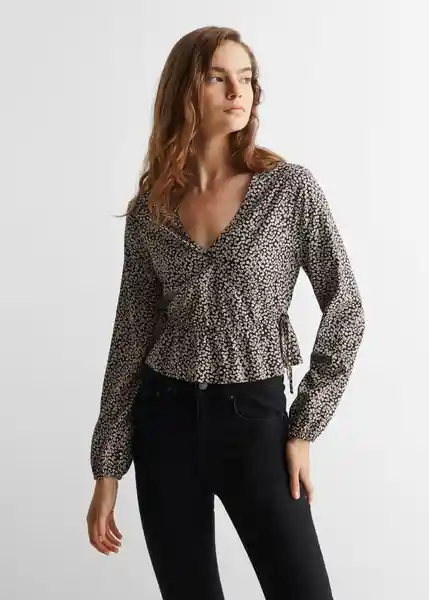Colección Fiesta y Ceremonia Cordón Decorativo Diseño Corto Diseño Cruzado Diseño Recto Escote de Pico Estampado de Flores Fruncido Elástico la Modelo Mide 172 cm y Lleva Una Talla L Manga Larga Con Puños Elásticos - 47050076_99.