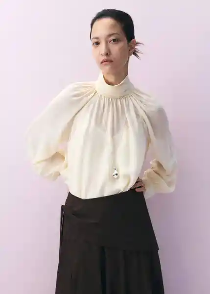Cierre de Cremallera en la Parte Posterior Cuello Alto Detalle de Volante Diseño Recto Exclusivo Online Manga Larga - 27075844_05.