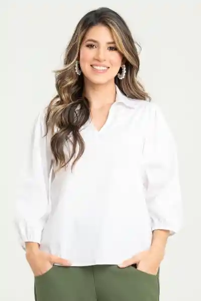 En Popelina Fondo Entero Con Cuello Camisero Escote en V Manga 3/4 Con Elástico en Puño.