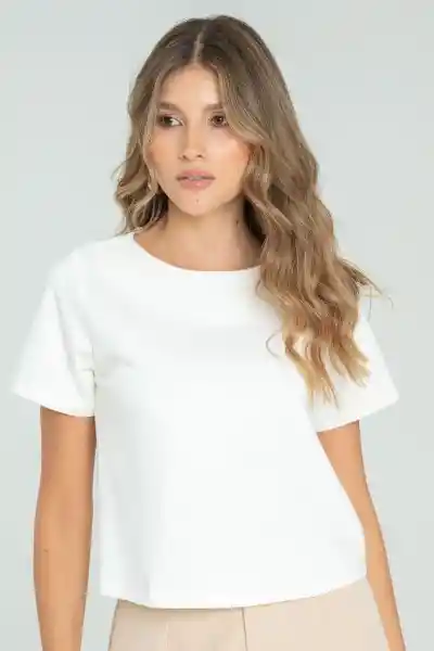 En Pontirroma Escote Redondo Manga Corta Cierre Decorativo en Espalda Silueta Tipo Cajón.