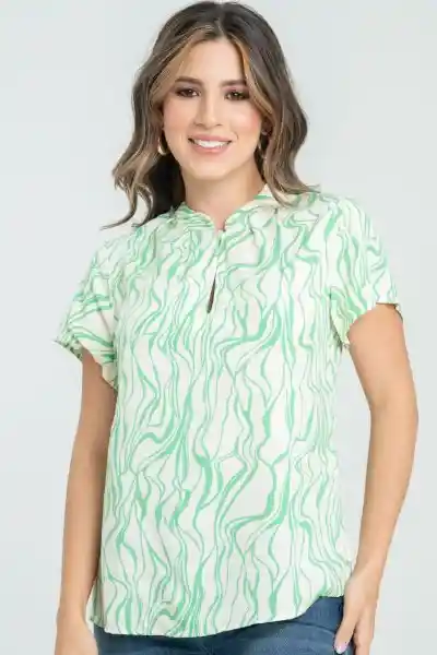 En Tejido Plano Estampado Cuello Con Terminación Redondeada Abertura Con Ojal en Tela y Botón de Pata 18L Prenses en la Parte Delantera Alrededor Del Cuello Aberturas de 6 cm a Lado y Lado Del Ruedo Silueta Semi - Ajustada.