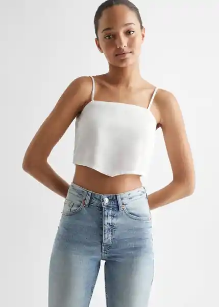 Cuello Cuadrado Detalle Fruncido en la Parte Posterior Diseño Corto Sin Mangas Tejido Mezcla de Algodón y Viscosa Tirantes Finos Ajustables - 47046306_02.
