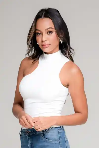 En Tejido de Punto Fondo Entero Cuello Alto Redondo Manga Sisa Asimétrica.