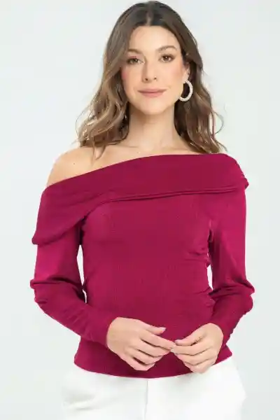 En Tejido de Punto Fondo Entero Con Acabado Especial Escote Asimétrico Con Recogido Suave en Hombro Derecho Fajón Que Sobrepone Sobre el Escote Puños Que Van Desde Debajo Del Codo Hasta el Ruedo Manga Larga Silueta Semi Ajustada.