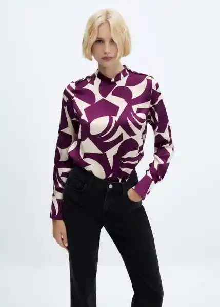 Cierre de Botones en el Hombro Cuello de Tira Diseño Estampado Diseño Recto Disponible Plus Looks de Oficina Manga Larga Abotonada Tejido Fluido Tejido Satinado - 57045983_78.