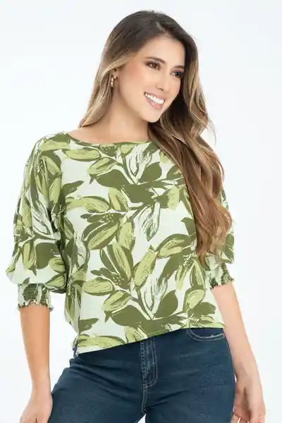 En Tejido Plano Estampado Escote Redondo Con Sesgo de 1 cm Abertura Con Ojal en Tela y Botón de Pata 18 L en la Parte Superior de la Espalda Manga 3/4 Con Puño Resortado en Nido de Abeja Aberturas de 5 cm a Lado y Lado Del Ruedo Ruedo de 0.8 mm.