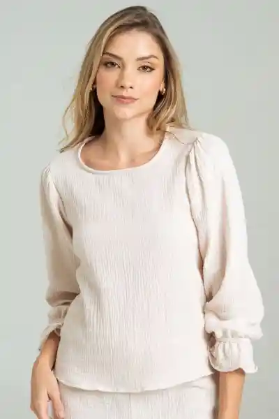 En Algodón Con Dobby Escote Redondo Manga Larga Con Campana en Puño.