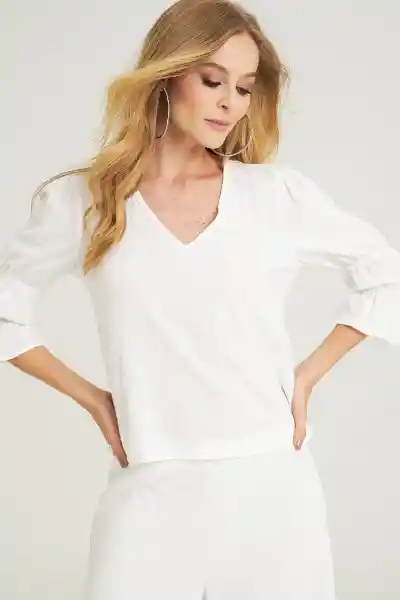 En Voile Fondo Entero Escote en V Tanto en Delantero Como en Trasero Sesgo Que Sostiene el Escote Trasero Manga 3/4 Con Elástico de 1 cm y Campana en Ruedo Silueta Semi - Ajustada.