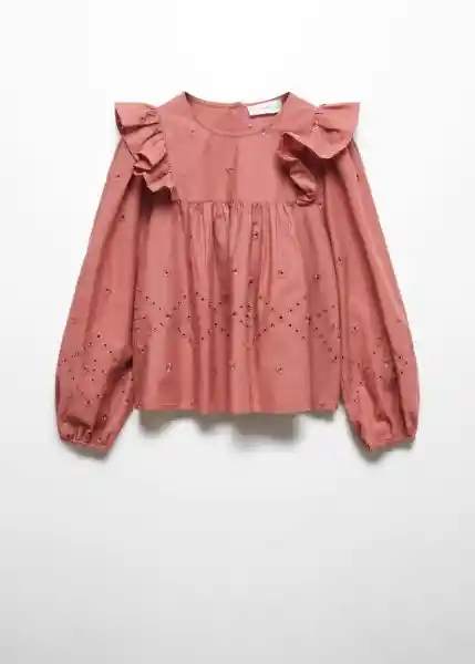 100% Algodón Cierre Trasero Cuello Redondo Detalle Bordado Detalle de Volantes Manga Larga - 57084023_85.