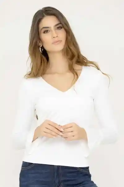Tejido de Punto Fondo Entero Tipo Crepe Escote en V Con Falso Manga Larga Con Campaña en Ruedo.