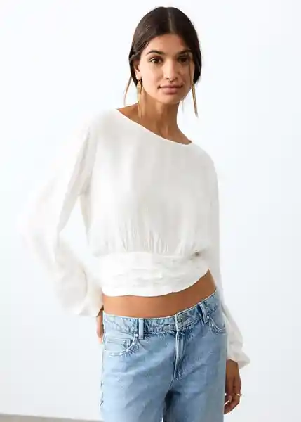 Cierre de Lágrima en la Parte Posterior Cuello Redondo Manga Larga Con Volante en Los Puños Panel Fruncido en la Cintura Tejido Fluido - 27061539_02.