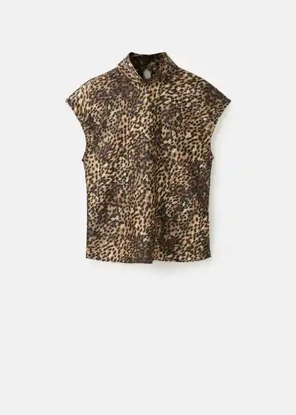 Cierre de Botones en la Parte Posterior Cuello Alto Diseño de Leopardo Diseño Recto Manga Corta Tejido Satinado - 17087815_30.