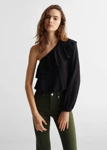 Colección Fiesta y Ceremonia Detalle de Hilo Metalizado Detalle de Volante Diseño Asimétrico Diseño Off-Shoulder la Modelo Mide 172 cm y Lleva Una Talla L Sin Cierre Tejido Ligero Una Manga - 47000200_99.