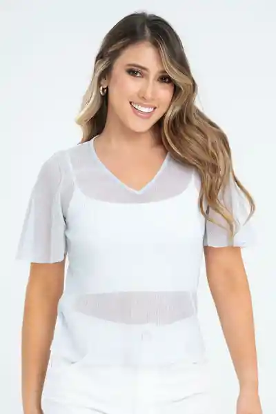 En Tejido de Punto Plisada Fondo Entero Escote Sesgado en V Manga Corta Amplia..