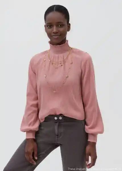 Cuello Alto Cuello Fruncido Diseño Recto Manga Larga Con Puños Elásticos y Fruncidos Tejido 100% Algodón Tejido Fluido - 17087125_68.