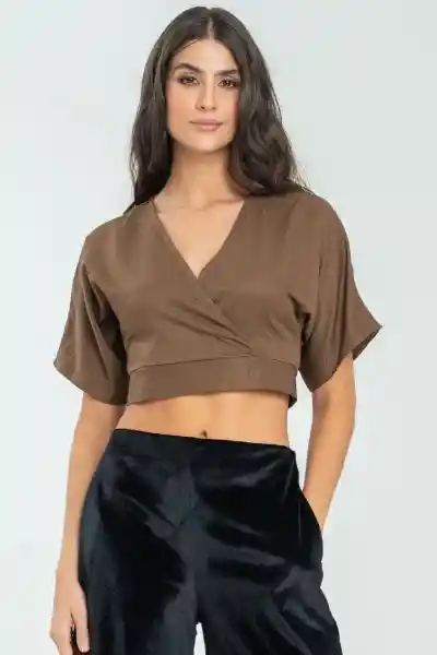 En Tejido Plano Fondo Entero Escote en V Con Sesgo Asentado en la Parte Interna Cruzado en la Parte Delantera Fajón en Ruedo Que Termina en Tiras Dobles Que Anudan en Espalda Manga Corta Con un Poco de Vuelo Silueta Semi - Ajustada.