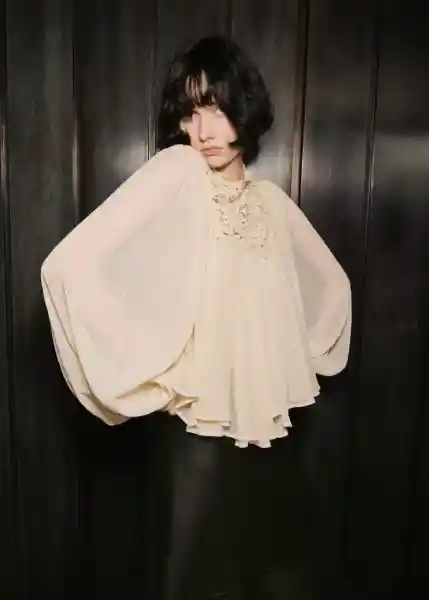Cierre de Botón en el Cuello Cuello Redondo Diseño Combinado Diseño Evasé Manga Larga Panel de Encaje - 17045819_05.