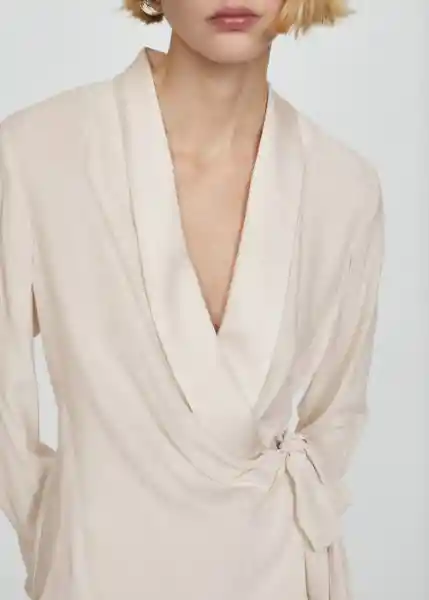 Cierre de Lazo Lateral Diseño Recto Escote de Pico Cruzado Manga Larga Puños Abotonados Tejido Fluido - 67055759_05.