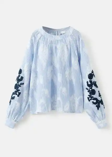 Bordado de Flores en Las Mangas Colección San Valentín Cuello Redondo Diseño Estampado Floral Diseño Recto Manga Larga Con Puños Abotonados Tejido 100% Algodón Tejido de Rayas - 27065151_50.