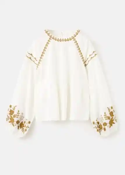 Bordado de Flores Cierre de Botón en la Parte Posterior Cuello Redondo Detalle Hilo Bordado Manga Larga Con Puños Elásticos Tejido 100% Algodón - 27094422_01.