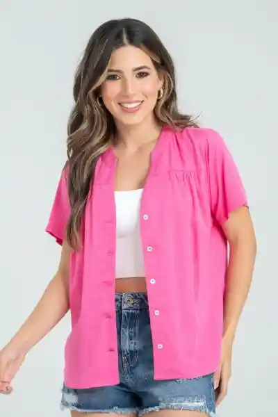 En Tejido Plano Fondo Entero Cuello Bien Asentado Cortes en Delantero y Trasero Con Recogido Suave y Parejo Manga Corta Botonado en Centro Frente Con Botones 18L Silueta Semi Ajustada.