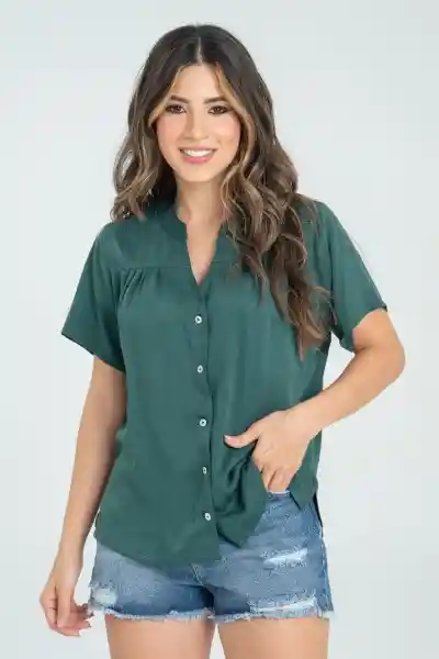 En Tejido Plano Fondo Entero Cuello Bien Asentado Cortes en Delantero y Trasero Con Recogido Suave y Parejo Manga Corta Botonado en Centro Frente Con Botones 18L Silueta Semi Ajustada.